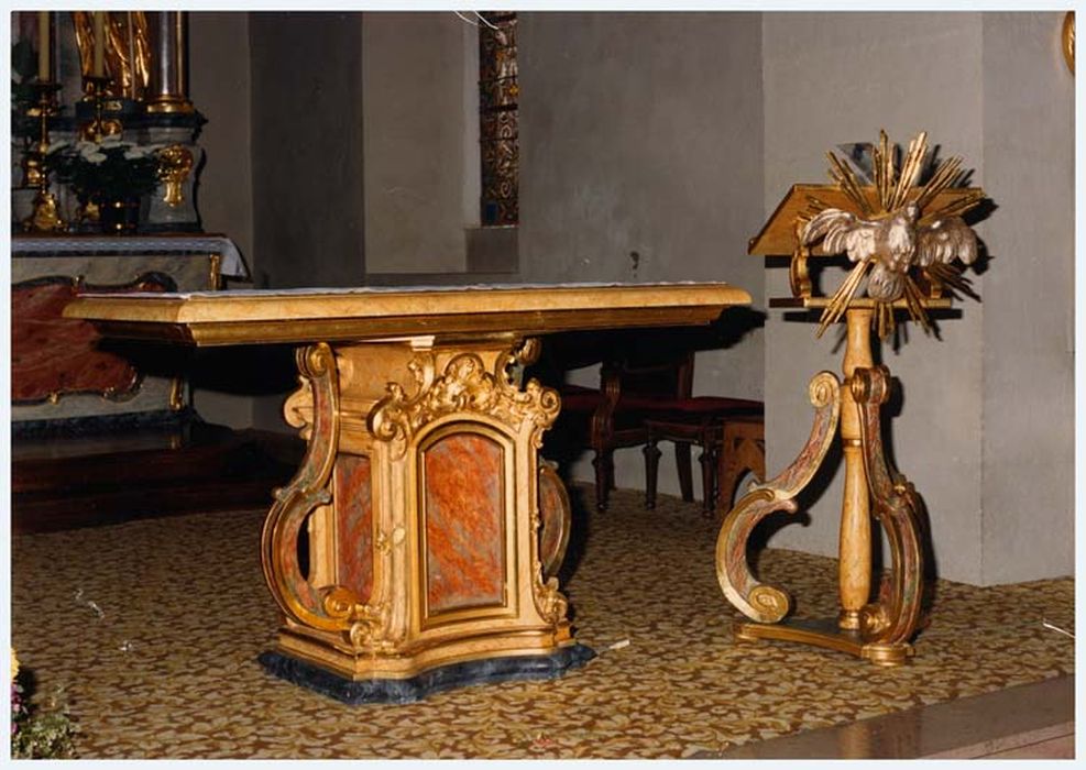 tilleul : taillé, peint (faux marbre), doré