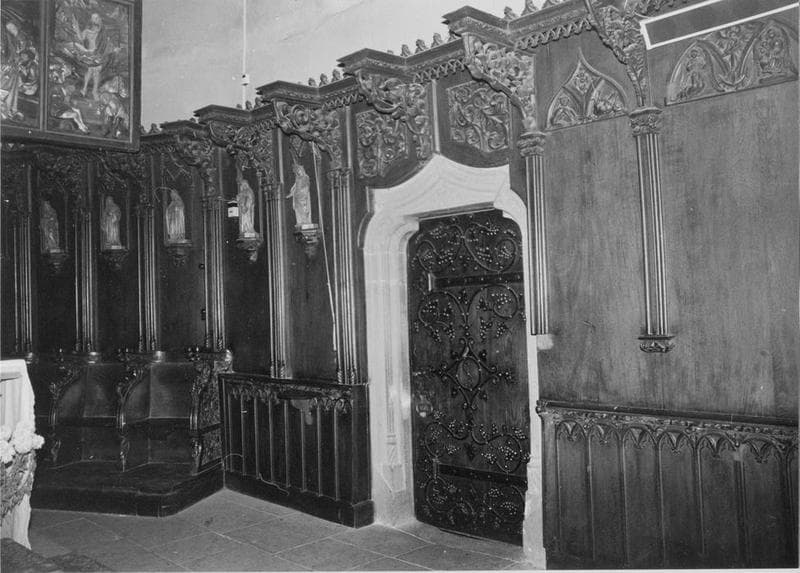 POP | Plateforme ouverte du patrimoinestalles, lambris de revêtement, 20 statues : sainte Richarde, sainte Odile, saint Attale, sainte Eugénie, sainte Adélaïde, sainte Hune, sainte Aurélie, saint Sigisbert, saint Dié, saint Pierre, saint Canisius (?), saint Déicole de Lure, saint Euchaire de Trèves, saint Florent, saint Fridolin, saint Dagobert, saint Materne de Milan, saint Arbogast, saint Armand, saint Léon IX