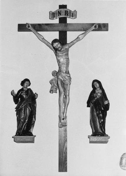 groupe sculpté : Christ en croix, la Vierge, saint Jean