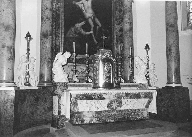 POP | Plateforme ouverte du patrimoineautel, gradin, tabernacle, 6 chandeliers, 8 statues : deux anges adorateurs, quatre putti céroféraires, deux putti, retable, baldaquin, tableau : saint Sébastien soigné par sainte Irène (maître-autel)