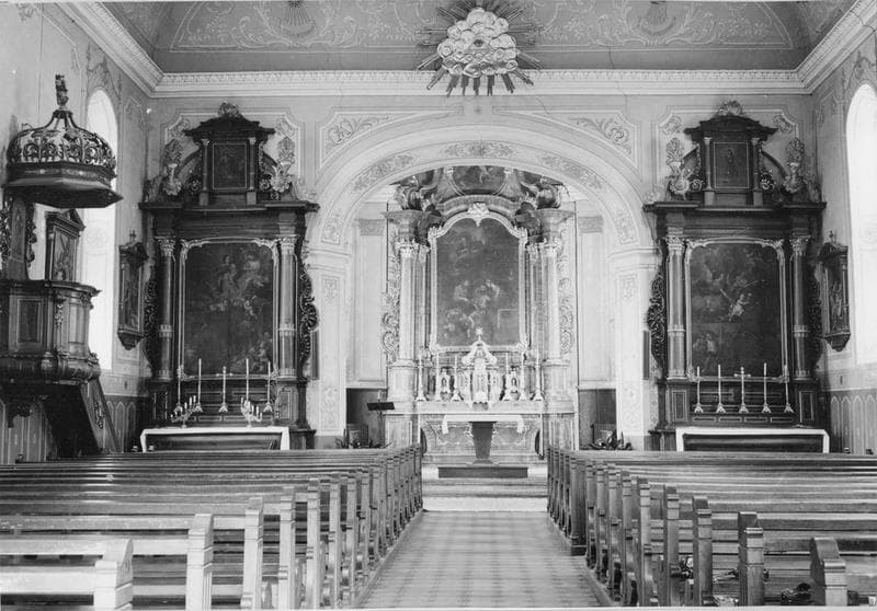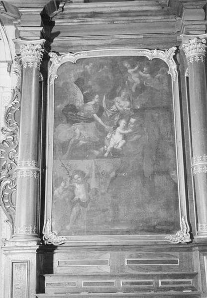POP | Plateforme ouverte du patrimoinemaître-autel et son tabernacle, 2 autels-retables secondaires et leurs 6 tableaux : la Mort de saint Joseph, saint Louis, saint Antoine de Padoue, sainte Claire d'Assise, vision de saint François d'Assise dans la chapelle de Portioncule, Résurrection du Christ, saint Jean-Baptiste