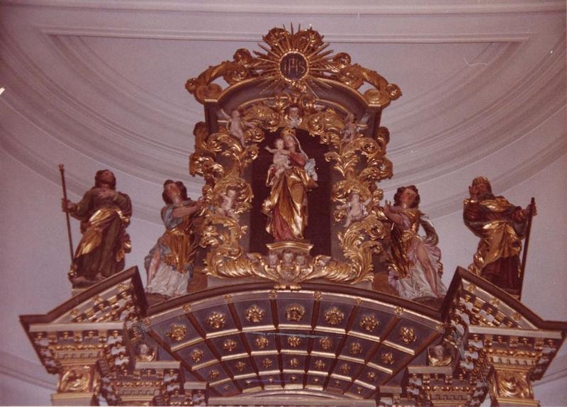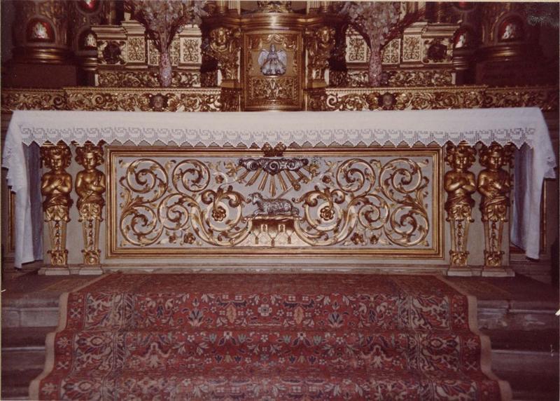 POP | Plateforme ouverte du patrimoineautel, retable, statues : le Christ, personnages de l'ancien testament, docteurs de l'église, saint Maurice, saint Théodule, saint Pierre, saint Paul, Vierge à l'Enfant, deux bergers (maître-autel)