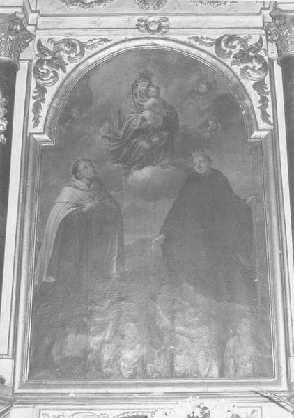 POP | Plateforme ouverte du patrimoineautel retable des âmes du purgatoire, 2 tableaux : Vierge à l'enfant tenant le scapulaire entre saint Odilon et saint Simon Stock, Education de la Vierge