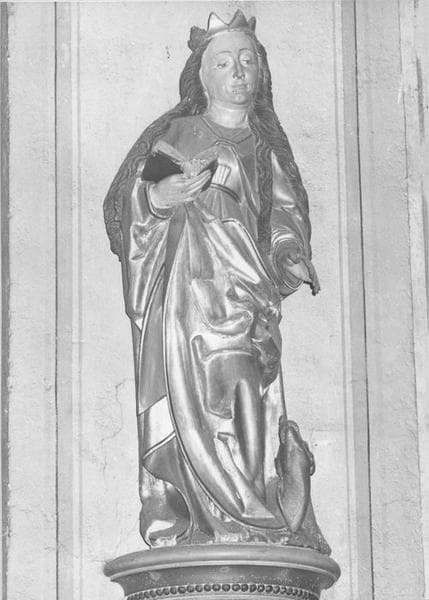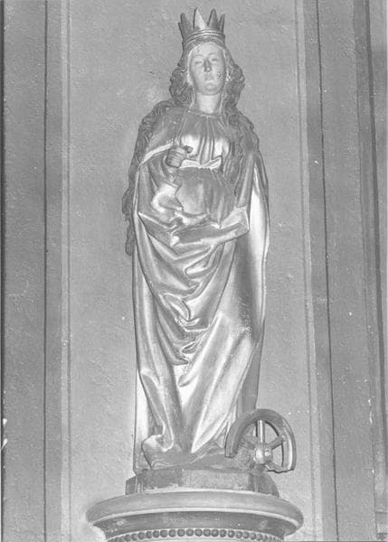 4 statues : sainte Barbe, sainte Catherine d'Alexandrie, sainte Marguerite d'Antioche, saint Benoît de Nursie (?)
