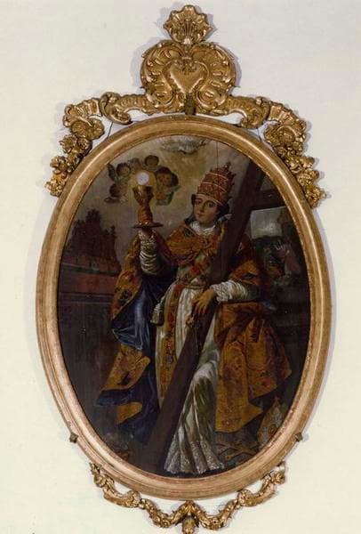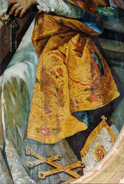bois : taillé, doré ; bois (support) : peinture à l'huile