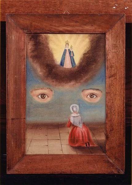POP | Plateforme ouverte du patrimoinetableau ex-voto : Vierge à l'Enfant, femme de dos, à genoux devant deux yeux