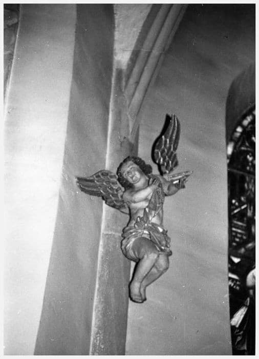 de part et d'autre de l'entrée du choeur, au départ des nervures de la voûte