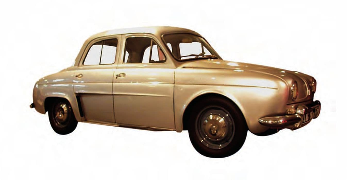 Dans les années 1950, le bureau d'étude de Renault est chargé d'élaborer un nouveau modèle de milieu de gamme, offrant un confort et une habitabilité supérieurs à ceux de la 4 CV, tout en conservant la même architecture générale et le moteur 4 cylindres en ligne monté à l'arrière. La Dauphine sera fabriquée dans les usines de Flins de 1956 à 1967. Ce sera la voiture la plus vendue en France entre 1957 et 1961. Le modèle est, d'un point de vue technique, assez évolué pour un véhicule de grande diffusion avec sa carrosserie acier monocoque autoporteuse et sa suspension à 4 roues indépendantes. Pour le reste, on retrouve les solutions classiques chères à Renault. Pour cette automobile à la ligne élégante, nettement plus moderne que la 4 CV, l'ingénieur Fernand Picard, qui dirige sa conception chez Renault, fait appel au styliste italien Ghia. La suspension à flexibilité variable imaginée par J. A. Grégoire a déjà été évoquée dans cette présentation. En 1947, Grégoire demande à Pierre Lefaucheux, directeur de Renault, d'essayer ce système sur des véhicules utilitaires (donc de poids relativement élevé) de la firme. Les résultats sont concluants. Grégoire propose le brevet à différentes marques (Berliet, Ford, Citroën, MonetGoyon). Quelques 20 000 Traction Citroën, des utilitaires Renault, des 4 CV et des autocars Berliet seront équipés de ce système. Au fond, Grégoire a transposé aux véhicules lourds la problématique que l'on rencontre avec les véhicules légers : un autocar, un camion, selon qu'il roule à vide ou en pleine charge, n'a pas les mêmes exigences en matière de suspension. Citroën travaille de son côté à une suspension oléo-pneumatique à haute pression, qui est adoptée sur la DS à partir de 1954. Grégoire décide alors, afin d'améliorer son système de suspension, de combiner ressorts et système pneumatique à basse pression afin de contourner la difficulté de l'appareillage technique sophistiqué qui équipe les Citroën DS. C'est la suspension que Grégoire qualifie d'atmosphérique et qui recevra le nom d'Aérostable. Comme souvent dans ce genre d'invention, c'est un principe simple qui se trouve à sa base : ici la résistance croissante de l'air au fur et à mesure qu'il est comprimé. Le système est testé avec succès sur les Dauphine et entre 1961 et 1966 équipera 1 400 000 voitures. Mais notre prototype témoigne d'une autre tentative : entre-temps, Grégoire essaiera encore un autre système, celui d'une suspension intégralement oléopneumatique à basse pression. En 1961, devant le succès de 1 Aérostable, Renault lui demanda d'étudier une suspension oléopneumatique. La Dauphine ainsi équipée fonctionna parfaitement pendant quelques années en parcourant 60. 000 km. Le prix de revient se chiffrait à environ moitié d'une suspension oléopneumatique à haute pression. Malgré son succès, Renault n'osa pas poursuivre cette expérience pleine de promesses, réalisée une seule fois dans l'histoire automobile. La Dauphine équipée de cette suspension se trouve aujourd'hui dans son musée personnel. Il s'agit d'un prototype unique, dont on voit que Grégoire a supprimé certains des ornements (inscriptions Dauphine latérales et à l'arrière, grilles de prises d'air latérales), sans doute afin de lui donner une allure plus sobre. Il manque l'admission, le filtre à air et la tête de distributeur. Sans doute Grégoire les avait-il ôtés pour permettre une meilleure visibilité du système oléopneumatique mis en évidence par la couleur rouge de la peinture. Ce prototype a parcouru 60 000 km donnant totale satisfaction. La Dauphine aérostable est également un unicum : ce prototype illustre les recherches de Grégoire dans un autre domaine, celui de la suspension à air à basse pression. Réponse à la technologie de suspension à huile que Citroën avait développée notamment sur sa DS, ce procédé ne connut pas d'application d'industrielle, mais témoigne des recherches tous azimuts de Grégoire en matière de génie automobile.