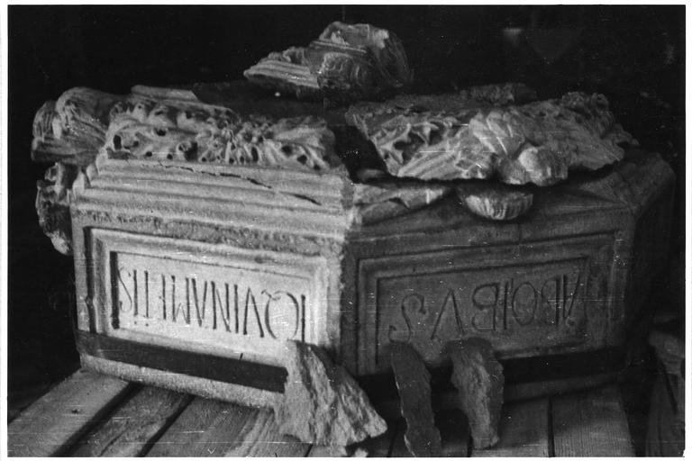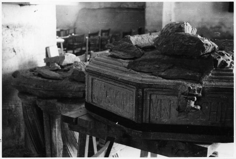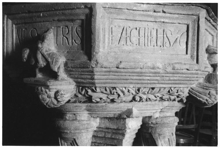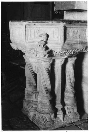 Inscription : (en caractères gothiques, tout autour de la cuve).