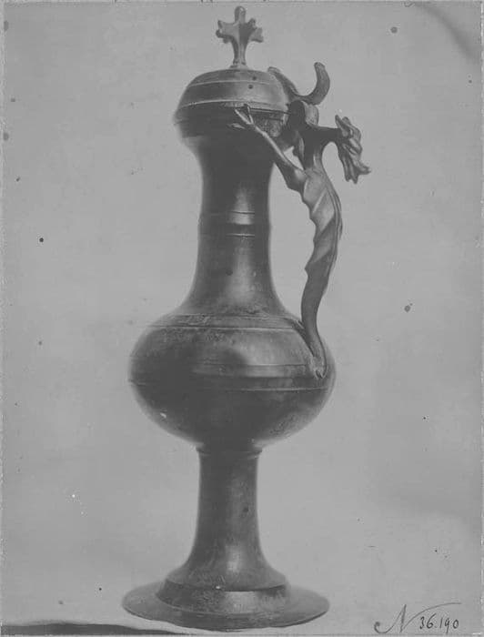 En forme de chien. Anse formée par un dragon ; pas de goulot. Bronze fondu.
