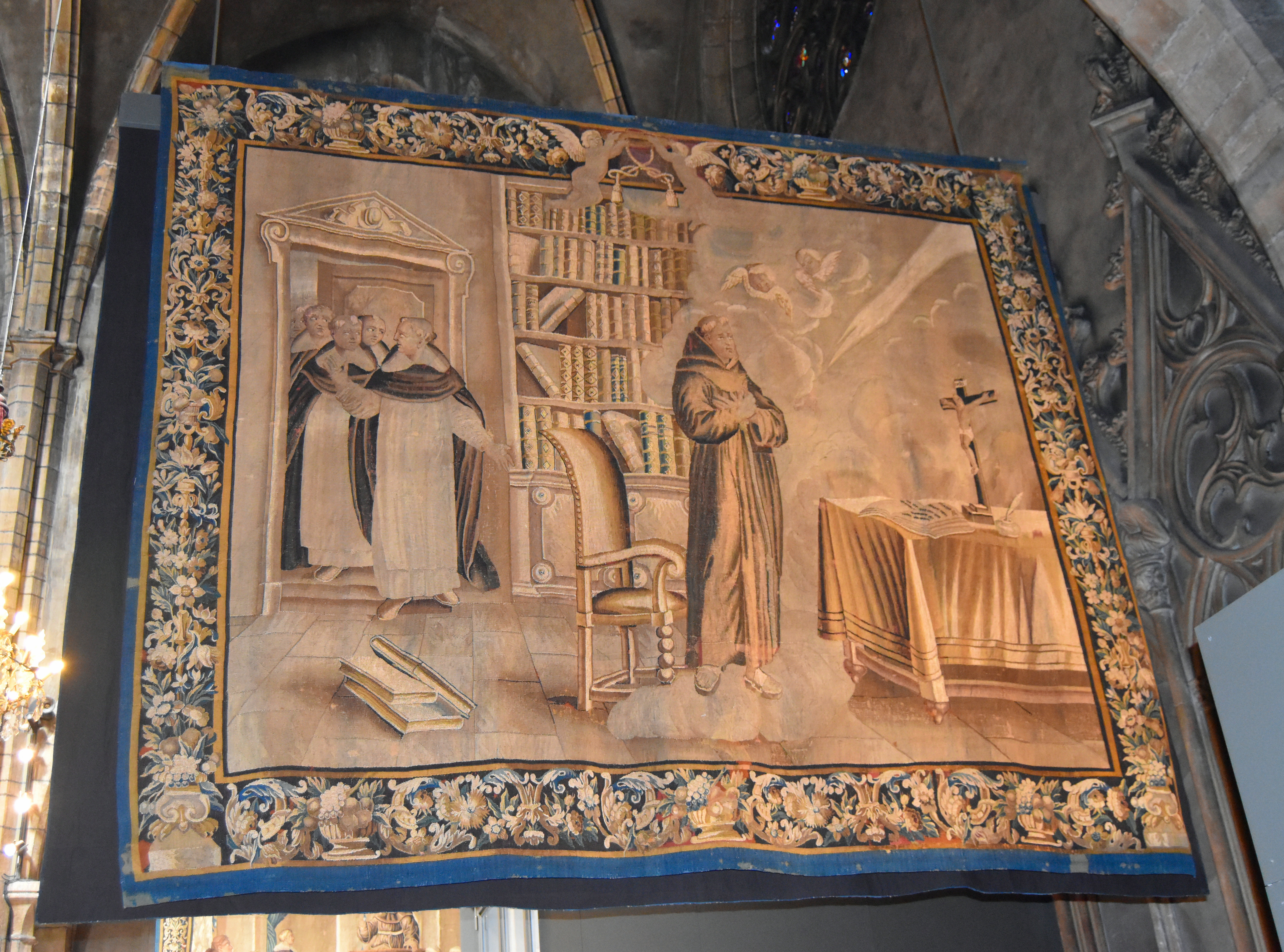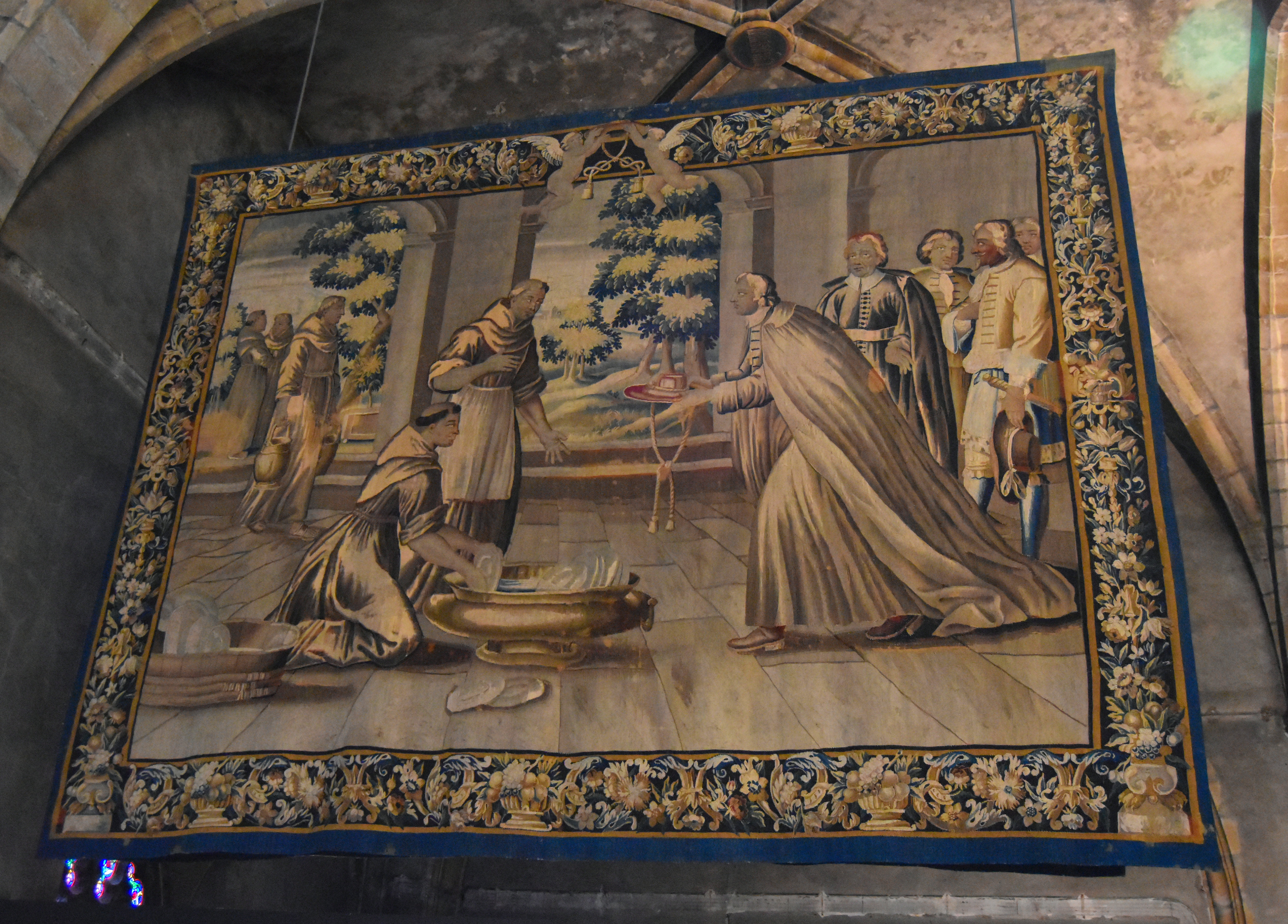 4 pièces murales de la tenture de l'Histoire de saint Bonaventure : Saint Bonaventure faisant profession, Saint Bonaventure en prières, Saint Bonaventure enseignant, Saint Bonaventure recevant le chapeau de cardinal