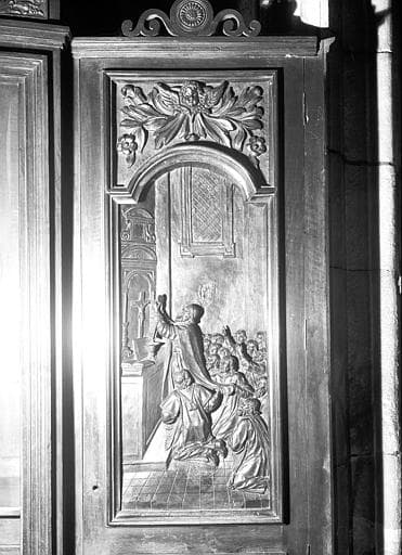 2 bas-reliefs : le Sacre d'un évêque, le Miracle de l'hostie