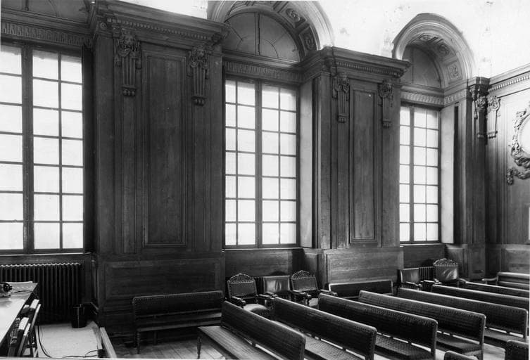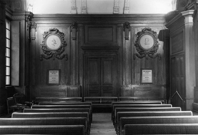 salle de la Chambre des notaires, au fond de la salle, côté jardin et côté entrée