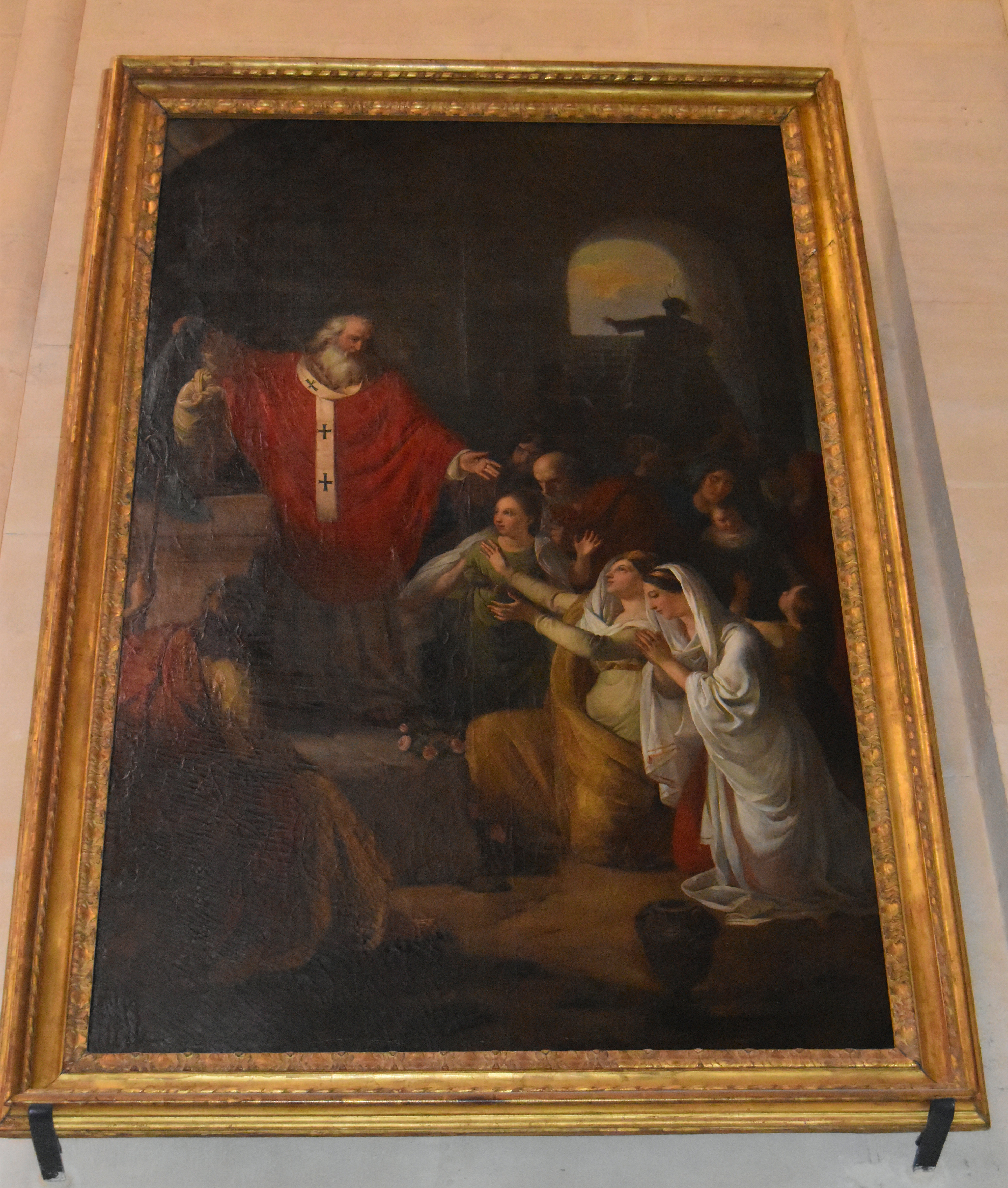 Monseigneur de Pins, administrateur apostolique du diocèse, a commandé en 1825 ou 1826 quatre tableaux représentant les martyrs lyonnais pour les placer à l'archevêché en remplacement des tableaux du 18e siècle encastrés dans les boiseries du grand salon. Trois seulement ont été exécutés par Genod, Biard et Soulary, le 4eme devait être peint par Orcel. Ils ont été payés 1000 F. en 1828 par la ville de Lyon. Après la loi de séparation de l'église et de l'état, ils ont été transférés dans la cathédrale entre 1909 et 1914. François Auguste Biard (Lyon 1799 ? - 1882).