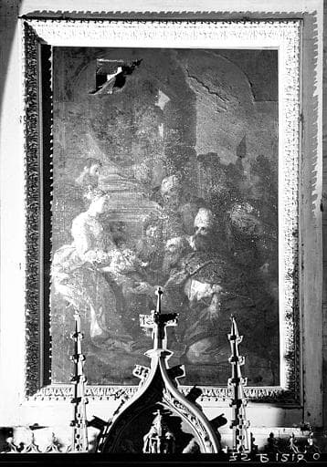 La partie supérieure semi-circulaire semble indiquer que le tableau a fait partie d'un retable.