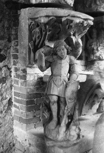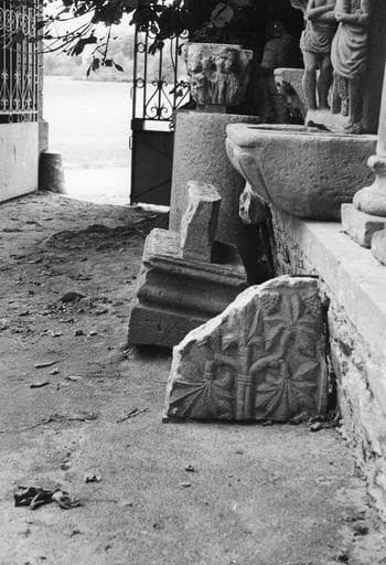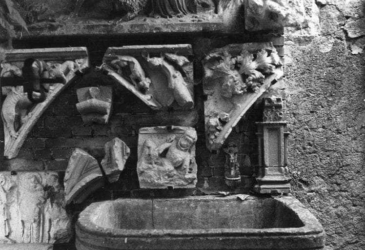 DOM. Liste des planches conservées dans le dossier de protection : Pl. I - Vue d'ensemble du Petit Musée Coquard dans le parc de la propriété dite Chalet Montange, Pl. II - Partie de l'ensemble et colonnes du cloître : 1ère moitié du XIIe siècle, pierre locale, h = 1m72, h = de la base 0m26, h du fut : 1m10, h du chapiteau : 0m34. Les chapiteaux sont à un ou plusieurs rangs de feuilles plates, incurvées, roulées ou terminées par une boule. Art du Velay. Pl. III: - Partie de l'ensemble. Pl. IV - 1) Fenêtre XVe, 2) Chapiteaux de colonnettes (motifs végétaux) et fragments de bandeaux à entrelacs. 3) Cuve baptismale, 4) Baptême du Christ, ensemble. Pl. V. - Baptême du Christ : groupe du XIIIe siècle. Le Christ, les genoux fléchis reçoit le baptême d'un St Jean Baptiste amplement drapé ; derrière le Christ, un agne vêtu d'une longue tunique à plis tuyautés porte les vêtements. H = 0m60, La = 0m50. Pl. VI - Cuve baptismale XIIIe s. H = 0m60 ; l = 1m20. Pl. VII - Fragments divers 1) Ecoinçons (monstres s'entredéchirant) XVe siècle 2) Silène XVe 3) Fragment : Chevalier endormi. Fin XIIe ou début XIIIe s. Ecole bourguignonne. Pl. VIII - 1) Personnage de stèle. Fin XIIe s. Pierre de Tournus. H = 0m98 ; la = 0m42. Prof. d'encastrement 0m16. Le personnage qui a une main ramenée sur la poitrine est vêtu d'une ample tunique ; draperie grecque. La tête et les attributs ont disparu ; il est donc malaisé de préciser la qualité du personnage, peut-être évêque ou Abbé. Style bourguignon. 2) Cinq chapiteaux à motifs décoratifs c) décor de vigne, 2e moitié du XIIe s., Cluny, d) feuilles plates milieu du XIIe, e) roues, début du XIIe. Influence orientale, h) feuillages, 2e moitié du XIIe, Cluny, i) rosaces, 1ère moitié du XIIe, art rustique, Forez, Dim. identiques h = 0m27 ; la = 0m27 3) Quatre chapiteaux historiés a), b), f), g) de la planche d'ensemble e) détails ci-après. Pl. IX - Adam et Eve - Quatre faces sculptées. XIIe s. Grain grossier, carrière locale. H = 0m32, H. du tailloir 0m22, H. de la base 0m10, LA = 0m36. Deux personnages nus émergent d'un décor de palmettes. Adam barbu tient la pomme. La tête d'Eve a disparu. Pl. X - Annonciation. 1er quart du XIIe s. a) Trois faces sculptées. Pierre blanche de Lucenay H = 0m27 , la = 0m27. La Vierge est à gauche de l'ange (influence clunisienne). Pl. XI - Lionnes affrontées H = 0m32 ; la = 0m36 ; Même pierre que le chapiteau d'Adam. Pl. XII - Sirènes. 1ère moitié du XIIe s. Pierre blanche de Tournus. H = 0m27 ; la = 0m27. Grande parenté de ce chapiteau avec celui de l'Annonciation. Pl. XIII. Ensemble de chapiteaux décrits ci-après. Pl. XIV - Christ triomphant. Milieu du XIIe s. Trois faces sculptées. Pierre de Tournus. H = 0m66 ; la face 1) 0m66 ; face 2) 0m57. Profondeur d'engagement 0m43. Grand et beau chapiteau de l'école de Cluny, on le comparera avec le 3e ton de la musique. Penché dans une mandorle, le Christ auréolé et triomphant, tient levé le doigt de la justice. Il est vêtu d'une chainse et d'un manteau. L'étoffe est soulevée par le vent. La tête porte de longs cheveux séparés sur le front et retombant sur le cou. Pl. XV - Ensemble. Détail ci-après. Pl. XVIe - Personnages affrontés. 1ère moitié du XIIe s. H = 0m55 ; la = 0m65. Pl. XVII - Histoire de David. Milieu du XIIe. Ecole de Cluny. H = 0m30 ; la = 0m30. Quatre faces sculptées : I) David joue de la cithare en gardant ses troupeaux, II-III) Représentation des troupeaux (brebis et porcs...) IV) Les envoyés de Samuel viennent prier David de se rendre près du Roi. Pl. XVIII Atlante. Milieu du XIIe s. Influence auvergnate. Pl. XIX Le lion et le dragon. Fin du XIIe s. Pierre blanche de Tournus. Deux faces sculptées dont une mutilée. Thème difficile à interpréter. H = 0m65 ; la =0m46. Pl. XX - Le Roi Salomon, 2e moitié du XIIe. Pierre blanche de Tournus. Trois faces sculptées dont une mutilée. H = 0m50 ; la = 0m46. Salomon accompagné d'un serviteur qui porte son épée tient un sceptre. Inscription : Rex Salomon en onciales. Art vigoureux, peut-être lyonnais. Pl. XXI - Chapiteau. XIIe siècle. Ecole de Cluny. H = 0m28 ; la = 0m28. 1ère face : Incrédulité de St Thomas. 2e face : Noli me tangere (pl. XXV, 2e plan). Pl. XXII 1) Chapiteaux à palmettes et entrelacs. 1ère moitié du XIIe s. A comparer avec les chapiteaux de l'Ile Barbe. 2) On peut voir dans ce fragment l'architrave de la claire-voie romane. Pierre de Tournus. L = 0m95 ; H = 0m22 ; Epaisseur 0m22. Pl. XXIII - Mascaron provenant vraisemblablement d'une fontaine XVe s. Pl. XXIV - Tobie et l'Ange. Haut relief de grande dimension 1m20 environ. D'une facture très savante. Influence italienne. XVe s. Tobie et l'Ange Raphaël arrivent au bord du Tigre. L'ange encourage Tobie à se saisir du poisson. La figure de l'ange est très majestueuse, beaux plis tombants, grandes ailes. Partie très exotique du paysage, grand bananier, plamier, figuier de barbarie. On aperçoit au fond Ragès, ville des Mèdes. Pl. XXV - Fragment. Fin XIIe. Palmiers-dattiers. Au second plan, face du chapiteau. Noli me tangere. Pl. XXVI. Clefs de voûte. Pierre jaune de Bully. 1ère moitié du XIIe. CElle de gauche représente l'agneau pascal au sabot retourné soutenant la base d'une croix grecque. H = 0m54 ; Long. 0m75. Pl. XXVII - St Michel. L'archange foulant le dragon porte la balance sur son écu. Pierre jaune de Bully avec traces de polychromie. Oeuvre gauche. XVe s. Pl. XVIII - Tombe gravée d'un chanoine. Fin XIIIe. Inscription : Obiit magister Johannes. H = 1m40 ; la = 0m45. Pl. XXIX. XXX - Croix de clocher en fer forgé. XIVe s. Pl. XXXI - La Cène, linteau. Fin XIIe siècle. Pierre locale. Grès. Long 3m12 ; H = 0m73. Saint Jean penché sur la poitrine du Christ lui demande Qui est-ce ? Le Christ donne le pain trempé dans le vin de Judas. Interpréation de la Cène dont le prototype semble être celui de Beaucaire (milieu XIIe.).