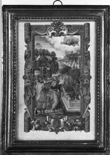 enluminure (feuillet de livre liturgique) : L'Holocauste d'Elie sur le Mont Carmel, cadre