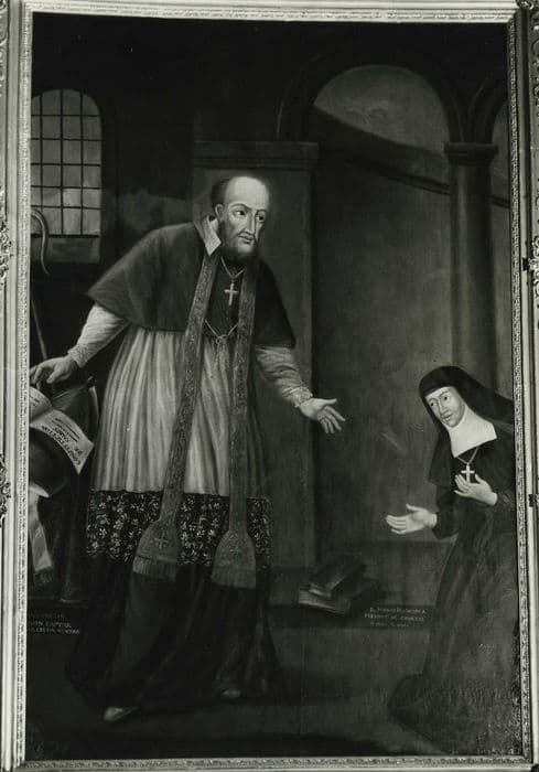 tableau : Saint François de Sales remettant à sainte Jeanne de Chantal les constitutions de la Visitation