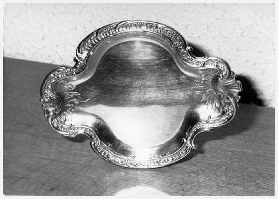 Les bords du plateau sont de forme chantournée avec une coquille aux deux extrémités.