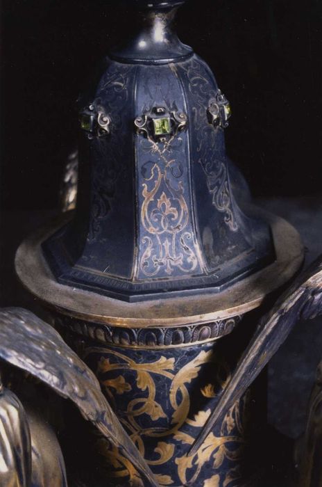 Argent doré et niellé, pierres fines et pierres précieuses.
