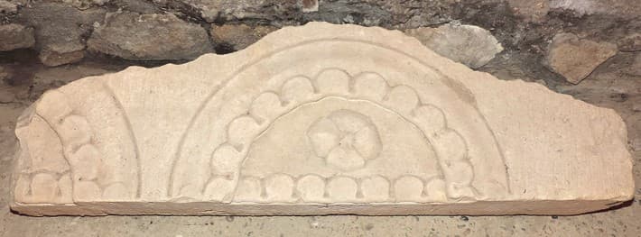 fragment de sculpture à arcatures en plein cintre à décor festonné et rosaces