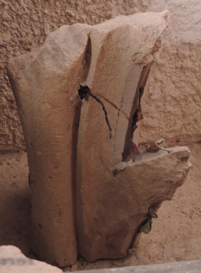 pierre : taillé ; verre : peint