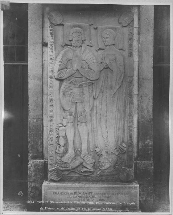 dalle funéraire de François de Plaisant, seigneur d'Aigrevault, et de Jeanne de Vié, sa femme