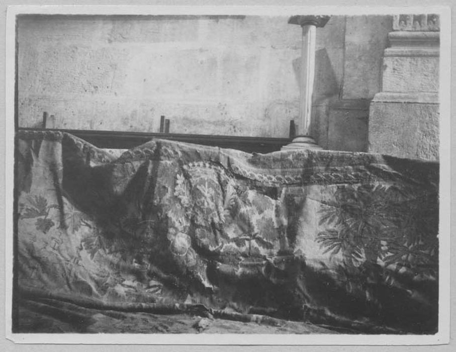 Restauration en 1965 et dépôt au palais du Tau à Reims la même année. Autre origine : atelier de Paris. Tapisseries exécutées pour le mariage ou le sacre de Louis XIV.