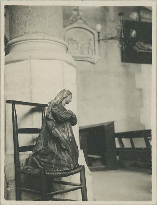 Statue de la Vierge en prière, ayant sans doute fait partie d'une salutation angélique.