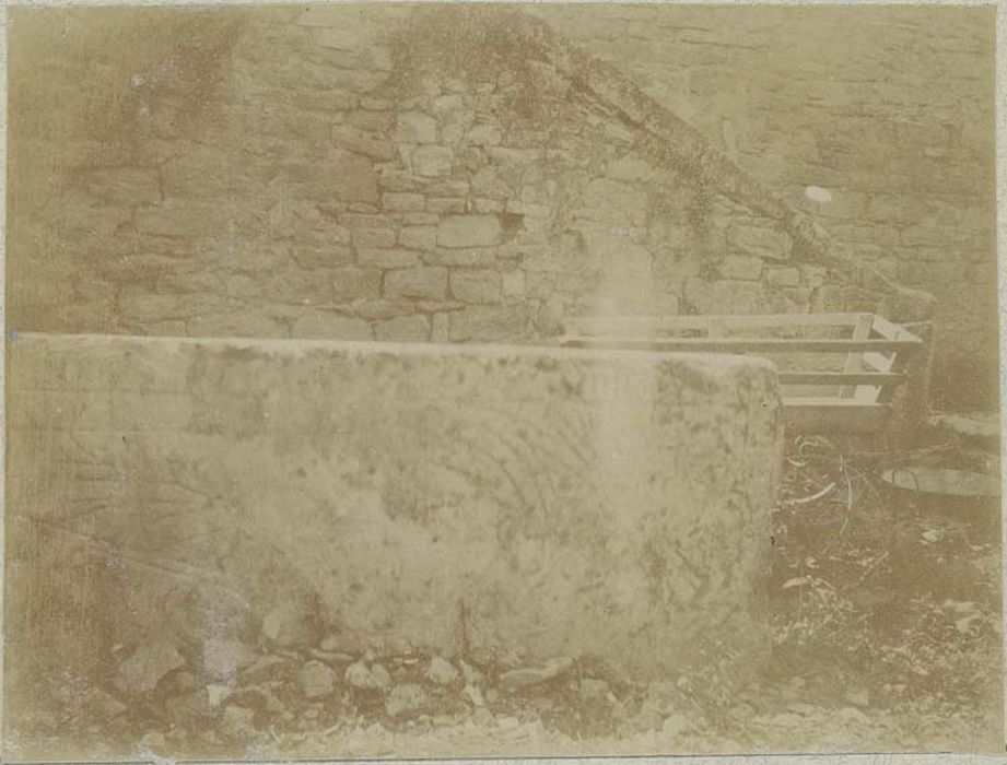 Grillage établi dans le mur donnant sur le cimetière de manière à permettre aux fidèles de voir la lampe brûler pour le saint sacrement.