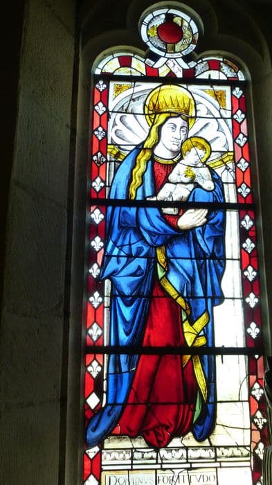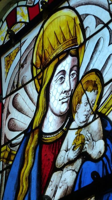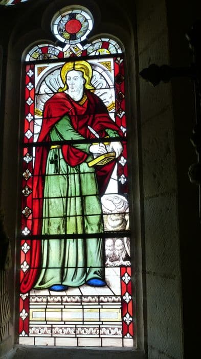 verrière : Vierge à l'Enfant et saint Jean l'évangéliste