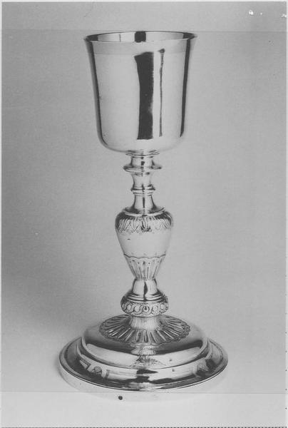 Ce calice est en argent et en argent doré (intérieur et bord de la coupe), repoussé et ciselé. La tige a été renforcée à l'étain.