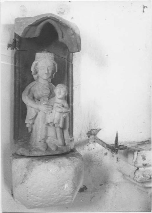 La Vierge à l'Enfant est abritée dans une niche architecturée à arcade trilobée, sculptée dans le même bloc de pierre.