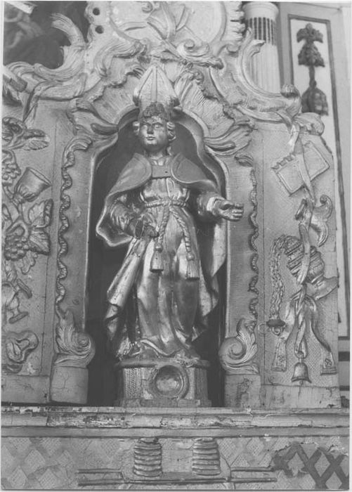 POP | Plateforme ouverte du patrimoineautel, retable, tabernacle, lambris de revêtement (boiserie), deux statuettes : Vierge et Evêque, et deux statues : Saint Claude et Evêque