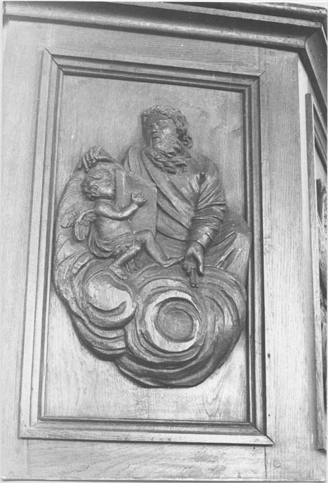 Représentation des quatre Evangélistes sur la chaire à prêcher.