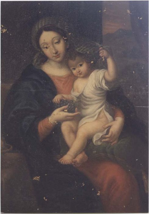 tableau : Vierge à l'Enfant tenant une grappe de raisin