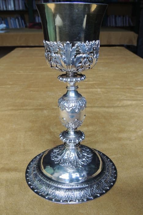 Poinçon de jurande B surmonté d'un lion ; Lyon, 1681, poinçon au D surmonté d'une fleur de lys et et accosté d'un S : poinçon de charge pour Lyon de 1680 à 1682, poinçon à couronne fermée : poinçon de décharge pour Lyon de 1680 à 1681, poinçons aux initiales IS séparées par un point et couronnées : attribué à Jacques II Simonet, reçu maître orfèvre à Lyon en 1662.