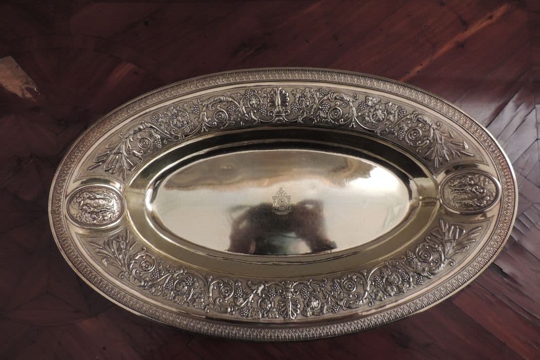 Sous le fond, poinçon à la tête de vieillard : argent premier titre pour Paris ; sous l'aile : poinçon de l'orfèvre F.-J. Paraud.