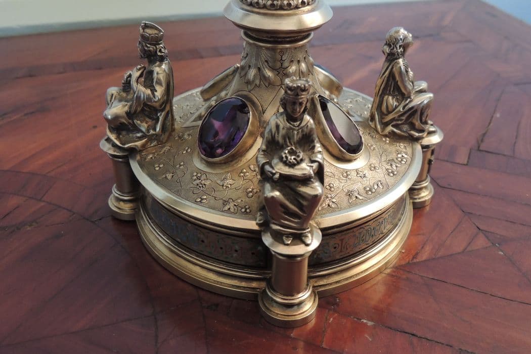 argent : doré ; émail ; améthyste ; diamant ; perle