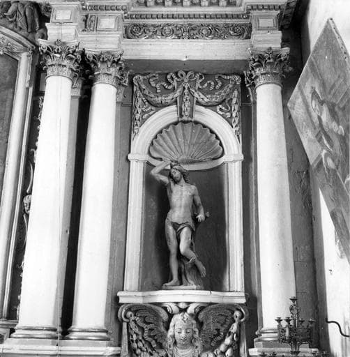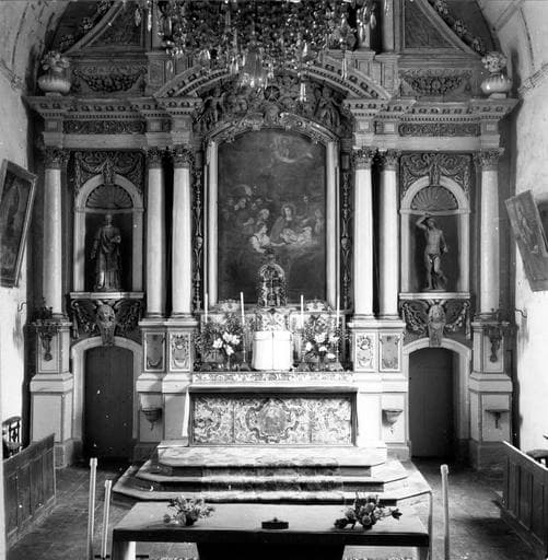 POP | Plateforme ouverte du patrimoinemaître-autel, tabernacle, retable, tableau : L'Adoration des bergers, groupe sculpté : L'Annonciation, 2 statues : Saint Laurent, Saint Sébastien