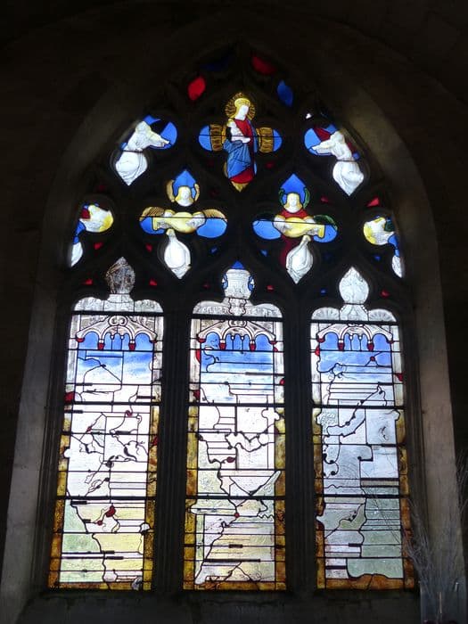 Les verrières, à l'état de fragments, se trouvent dans une fenêtre d'une chapelle latérale, et remplissent le tympan de cette fenêtre.