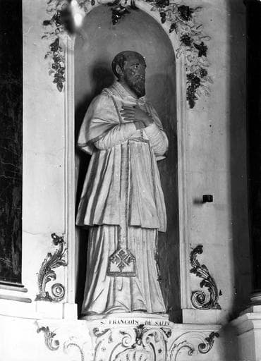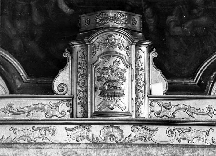 POP | Plateforme ouverte du patrimoineretable du maître-autel, gradins d'autel, tabernacle, tableau : La Résurrection du Christ, statues : Saint François de Sales, Saint Augustin, Saint Sulpice