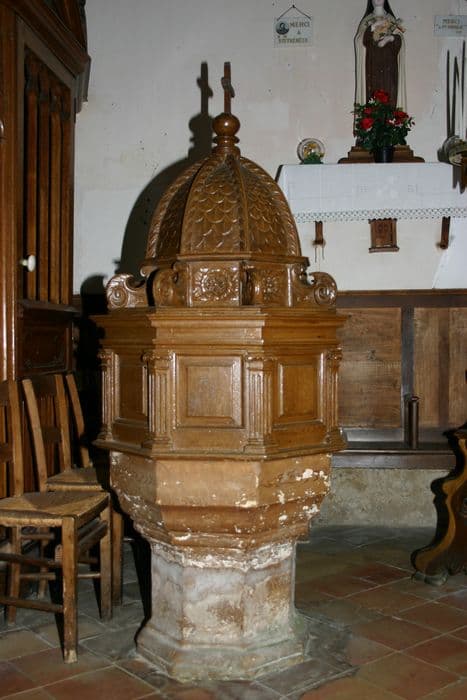 Le pied est en pierre, et la partie supérieure, octogone, est en chêne ; elle se compose d'un coffre, et est surmontée d'une boule, dont la croix est manquante.