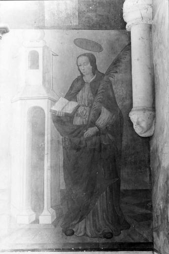 POP | Plateforme ouverte du patrimoinepeintures monumentales : Saint Christophe, Saint Georges terrassant le dragon, La Chasse de saint Hubert, Sainte Barbe