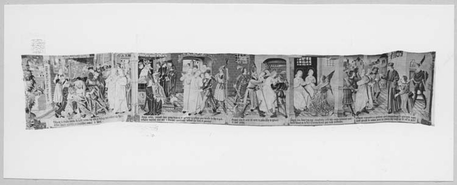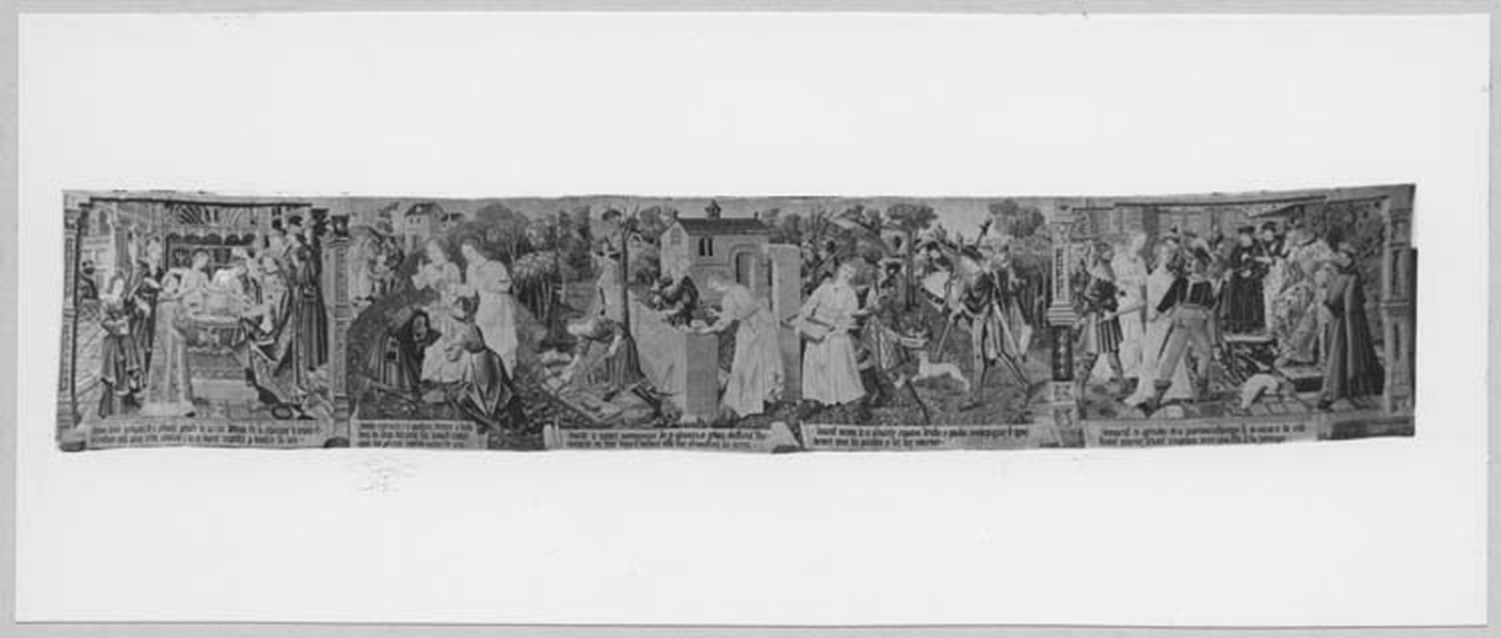 Tapisserie constituée de cinq pièces de dix sept scènes.