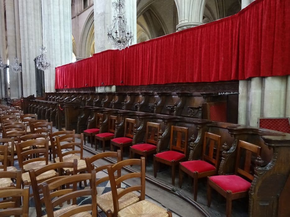 Les éléments de stalles consistent en 21 miséricordes sculptées, 17 joues, et des éléments des abat-voix.