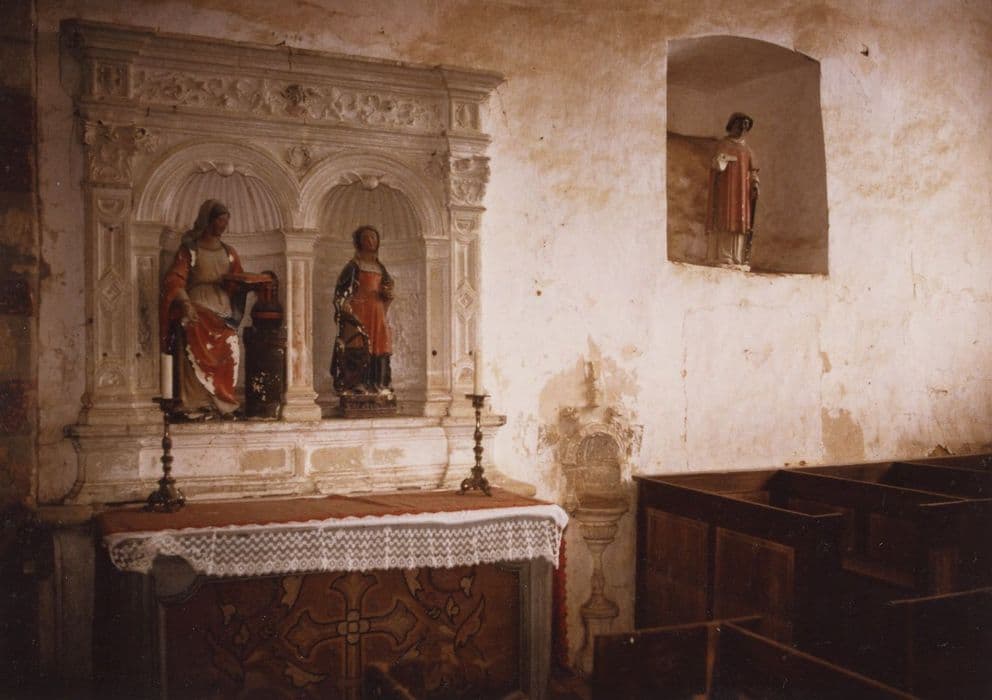 L'autel possède une contretable à deux niches, contenant deux statues, de sainte Barbe, et sainte Catherine.