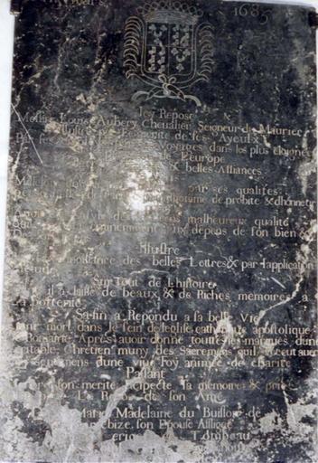 plaque funéraire de Louis Aubéry, seigneur du Maurier