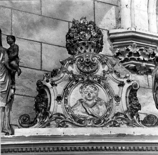 POP | Plateforme ouverte du patrimoine2 retables, statues : Vierge à l'Enfant, l'Education de la Vierge, saint Georges terrassant le dragon, saint Sébastien, bas-reliefs : la Vierge et saint Joseph (?), 2 tableaux : l'Annonciation et l'Adoration des Mages