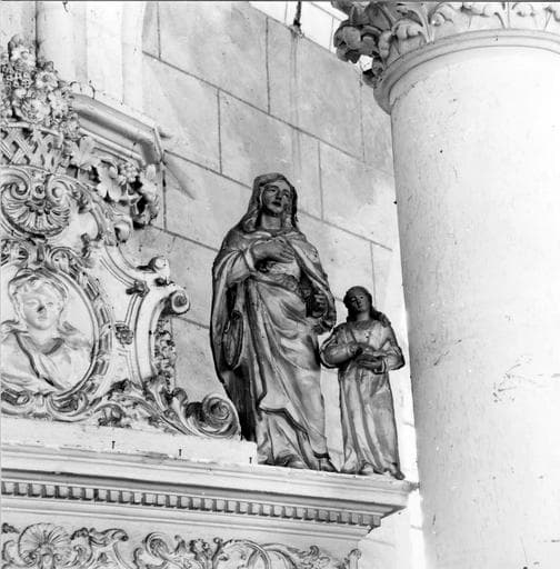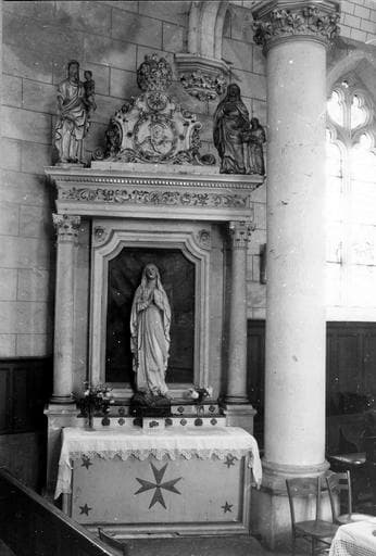 2 retables, statues : Vierge à l'Enfant, l'Education de la Vierge, saint Georges terrassant le dragon, saint Sébastien, bas-reliefs : la Vierge et saint Joseph (?), 2 tableaux : l'Annonciation et l'Adoration des Mages